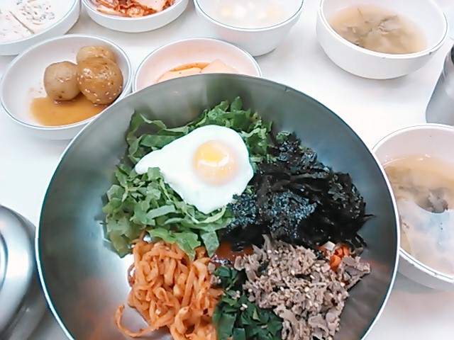 昼ご飯に冷麺(私はビビン麺)と