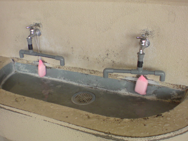 ヒトツの水道をパイプで出口フタツにしてる~!