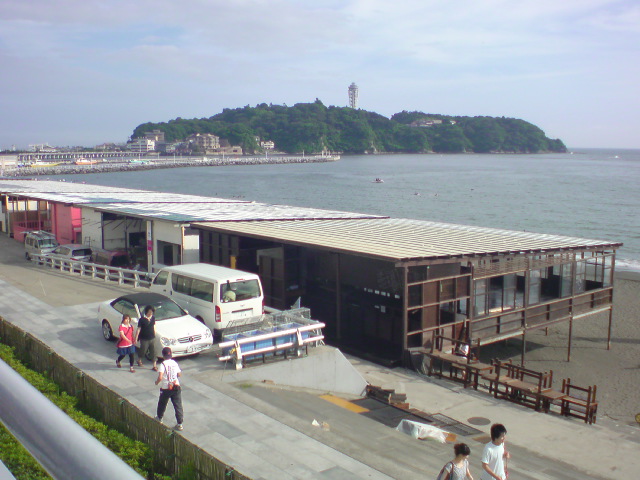 えのすい周辺の海岸では、もう海の家の建設が始まってました。