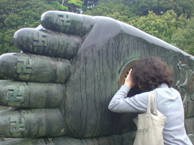 お釈迦様の足の裏に写真のように触って